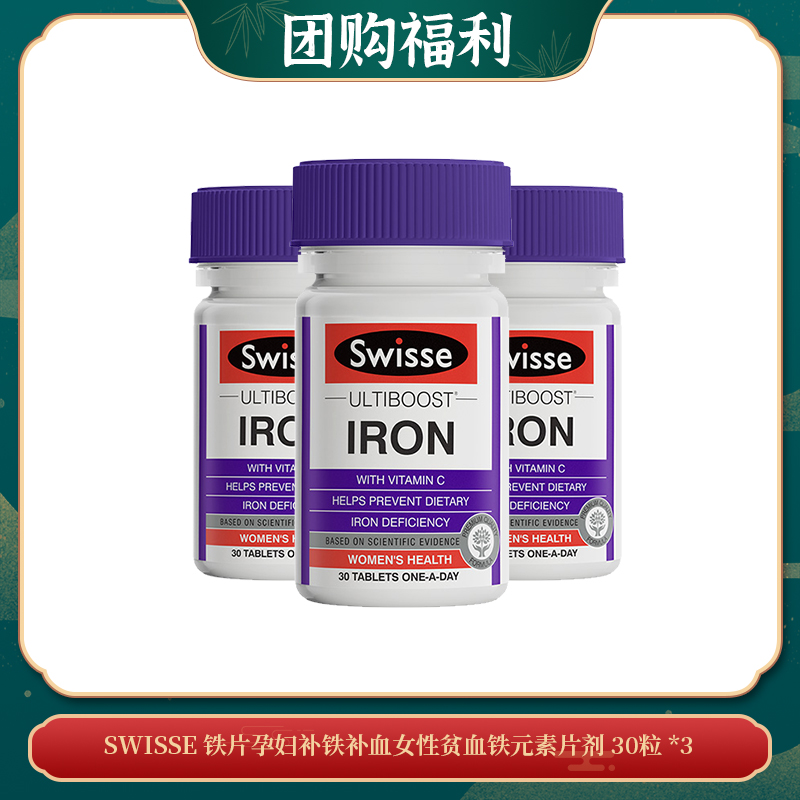【04.13团购福利】SWISSE 铁片孕妇补铁补血女性贫血铁元素片剂 30粒 *3..