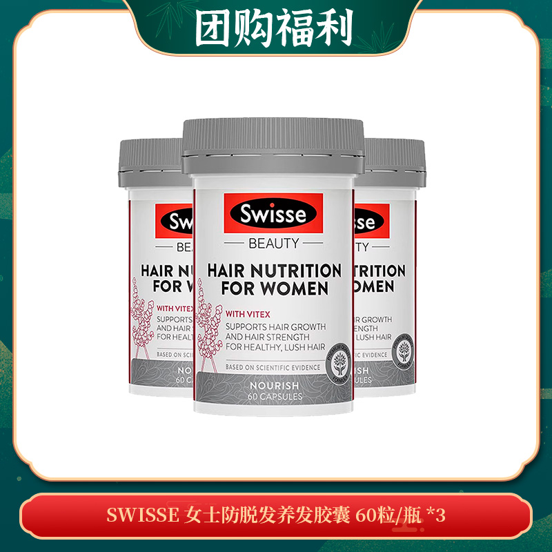 【04.14团购福利】SWISSE 女士防脱发养发胶囊 60粒/瓶 *3..