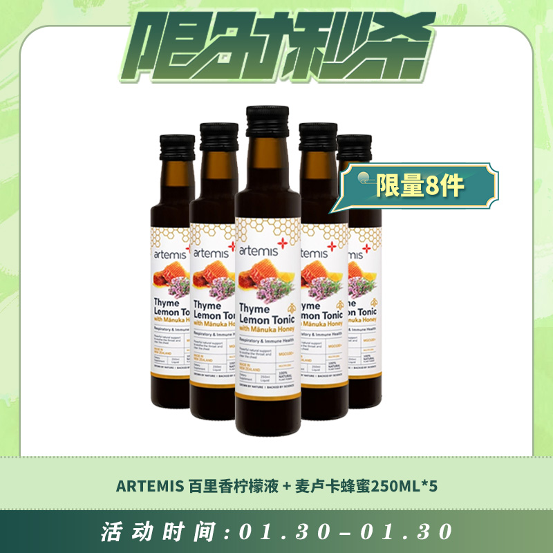 【01.30每日限时秒杀】artemis 百里香柠檬液 + 麦卢卡蜂蜜250ml*5..