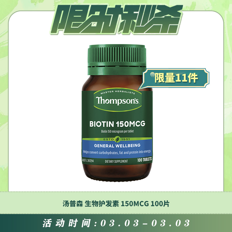 【03.03每日限时秒杀】THOMPSON'S 汤普森 BIOTIN 150MCG 生物护发..