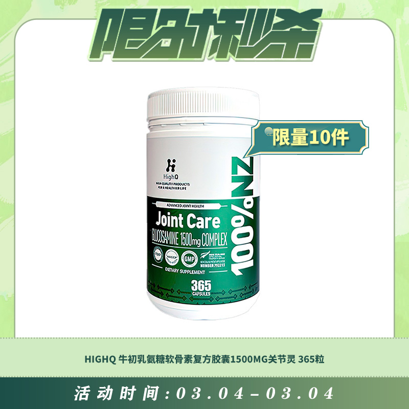 【03.04每日限时秒杀】HIGHQ 牛初乳氨糖软骨素复方胶囊1500MG关节灵 365粒..
