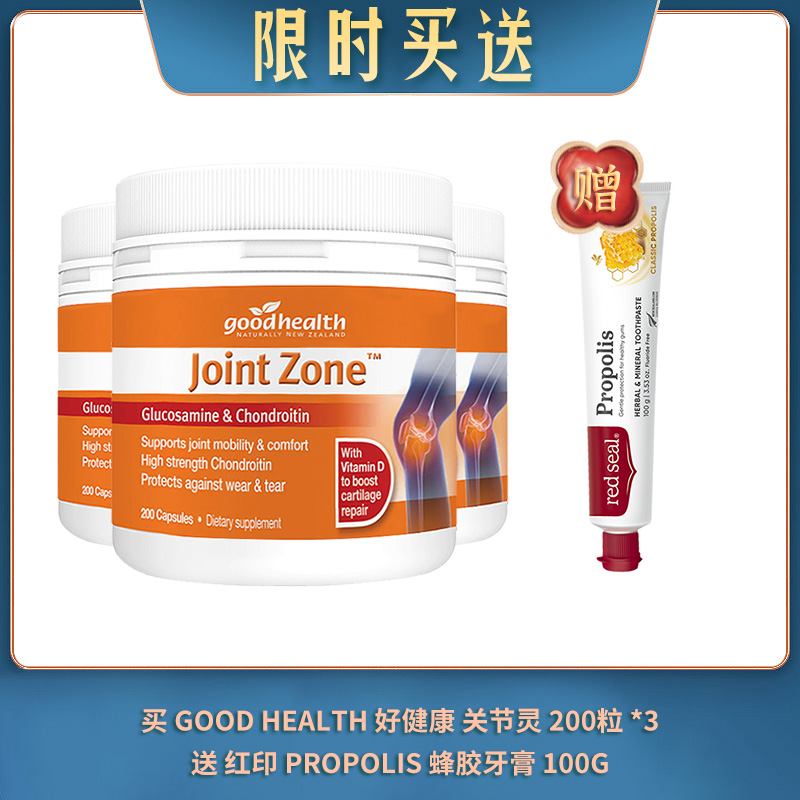 【04.01限时买送】买 GOOD HEALTH 好健康 关节灵 200粒 *3 送 RED SEAL 红印 PROPOLIS 蜂胶牙膏 100G