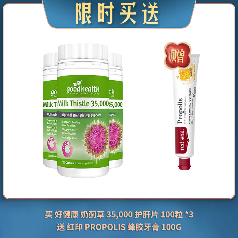 【04.01限时买送】买 GOOD HEALTH 好健康 奶蓟草 35,000 护肝片 100粒 *3 送 RED SEAL 红印 PROPOLIS 蜂胶牙膏 100G