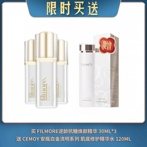 【10.30限时买送】买 FILMORE逆龄抗糖焕颜精华 30ML*3 送 CEMOY 安瓶白金流明系列 肌底修护精华水 120ML