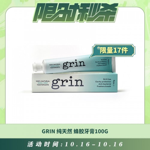 标签: 【10.16每日限时秒杀】Grin 新西兰本土 牙医推荐 纯天然 蜂胶牙膏 抗敏感/保护牙龈/杀菌 100g