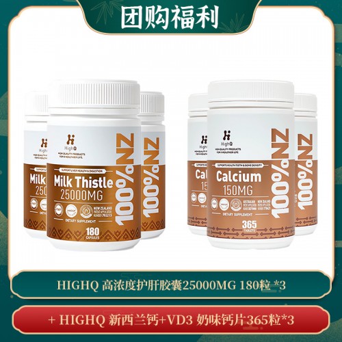 【HIGHQ 护肝胶囊25000MG 180粒 *3 + HIGHQ 新西兰钙365粒*3】