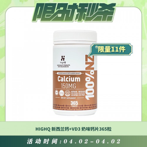 【04.02每日限时秒杀】HIGHQ 新西兰钙+VD3 奶味钙片365粒