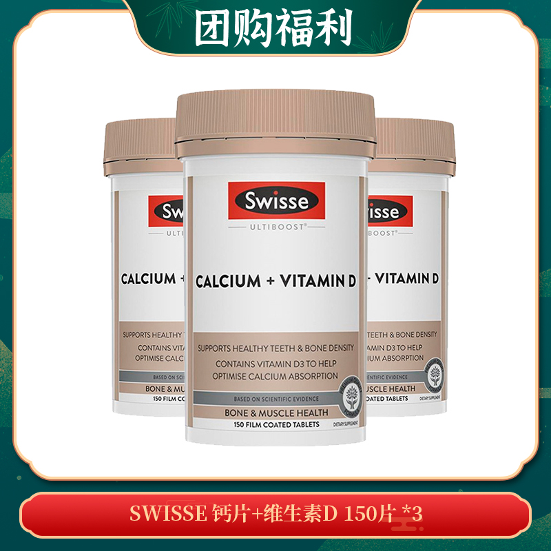 【11.21团购福利】SWISSE 钙片+维生素D 150片 *3..
