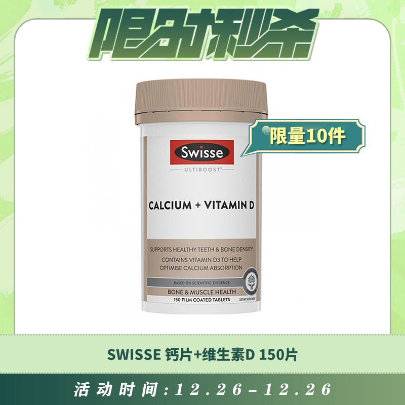 【12.26每日限时秒杀】SWISSE 钙片+维生素D 150片..