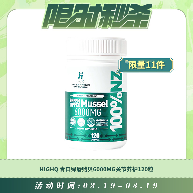 【03.19每日限时秒杀】HIGHQ 青口绿唇贻贝6000MG关节养护120粒